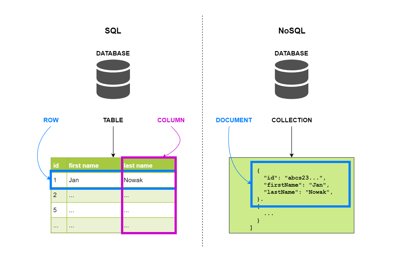 - nierelacyjne (NoSQL)