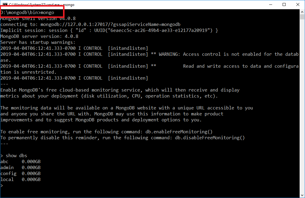 MongoDB console