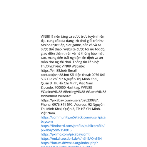 Website: https://pixabay.com/users/52623083/. VIN88 là nền tảng ca cược trực tuyến hiện đại, cung cấp đa dạng trò chơi giải trí như casino trực tiếp, slot game, bắn cá và ca cược thể thao. Website được tối ưu tốc độ, giao diện thân thiện và hệ thống