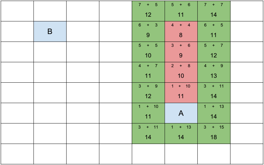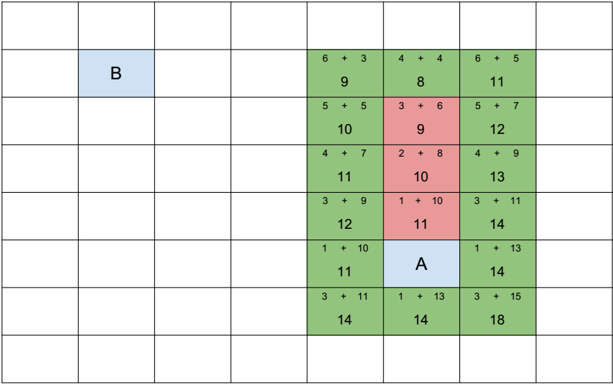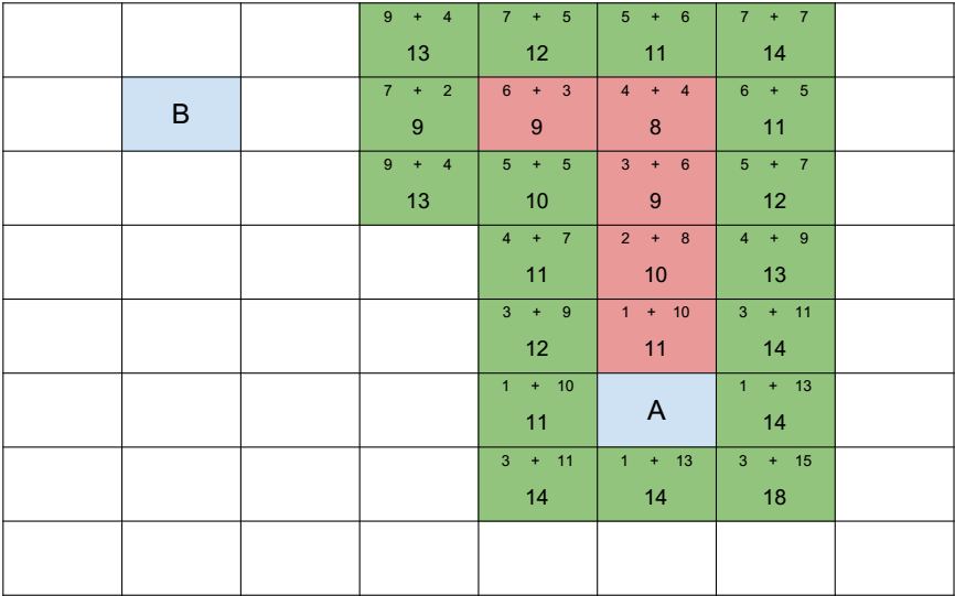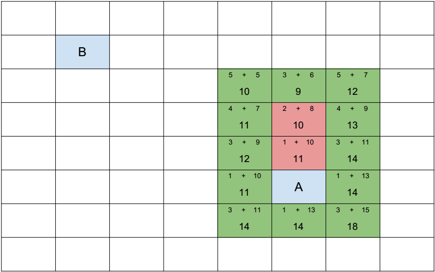 Quindi muoversi sulla croce costerà 1 mentre sulle diagonali 3;