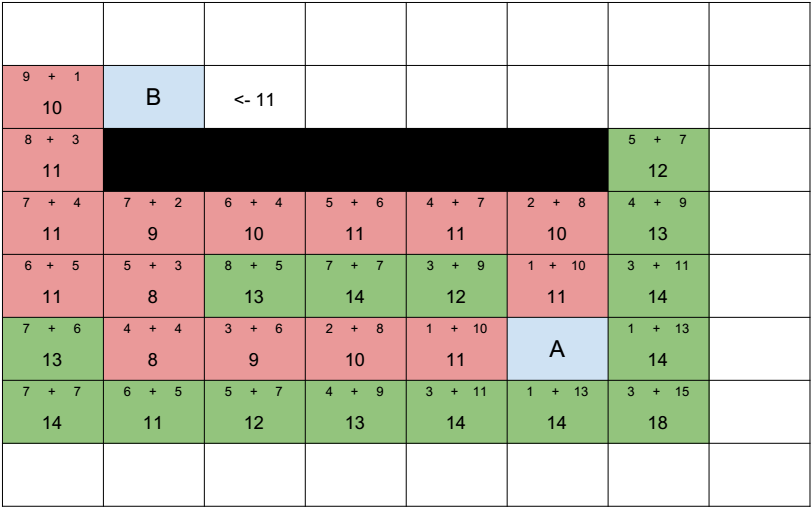 Il numero in alto a sinistra è la distanza tra la cella in questione e la cella Start;