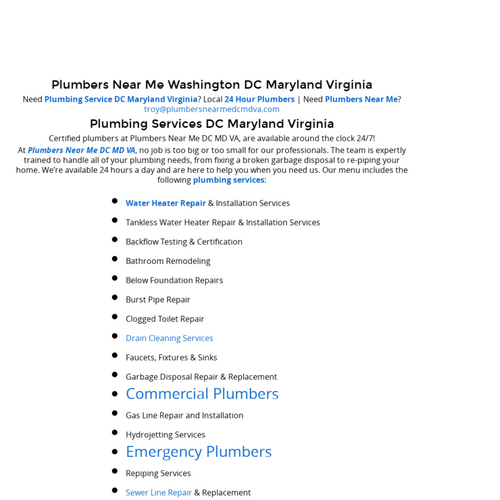 Need Plumbing Service DC Maryland Virginia? Local 24 Hour Plumbers | Need Plumbers Near Me? troy@plumbersnearmedcmdva.com