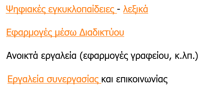 –Λογισμικό γενικής χρήσης, π.χ. κειμενογράφος, λογιστικά φύλλα, βάσεις δεδομένων κ.λπ. που χρησιμοποιείται ως γνωστικό εργαλείο (cognitive tool)