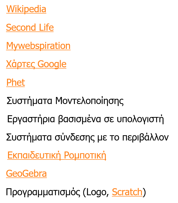 Έκφρασης, Δημιουργίας, Επικοινωνίας, Συνεργασίας (που στηρίζονται κυρίως σε θεωρίες μάθησης εποικοδομιστικές και κοινωνικοπολιτιστικές)