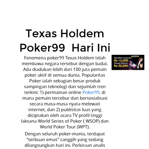 Fenomena poker99 telah membawa negara tersebut dengan badai. Ada diadukan lebih dari 100 juta pemain poker aktif di semua dunia. PopularitasPoker99 ialah sebagian besar produk sampingan teknologi