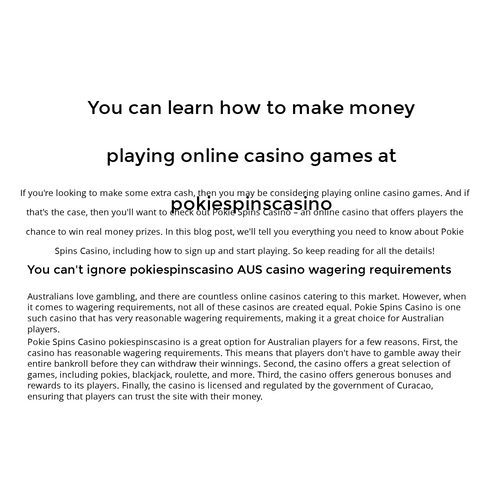Pokie Spins Casino is Australia's #1 online casino with the best games and bonuses in the country. Our goal is to provide you with a superior gaming experience that's fun, light-hearted, and as easy as possible.