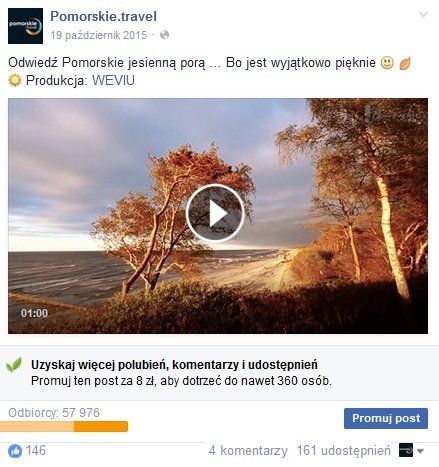w prowadzonej przez PROT komunikacji w ramach social mediów. Funpage pomorskie.travel obserwuje już prawie 10 tys. użytkowników, rośnie również liczba fanów na profilu pomorskie prestige.