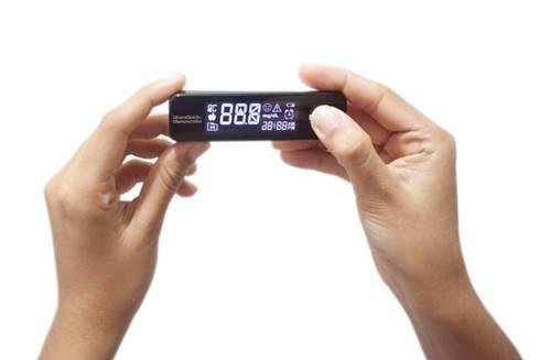 Al insertar la tira, el dispositivo se encenderá automáticamente apareciendo en pantalla la imagen de la tira intermitente con fecha y hora, indicando que esta listo para colocar la gota de sangre.