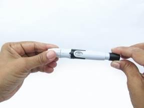 Aliste el puncionador. Con las manos limpias y secas prepare el puncionador para realizar la extracción de la muestra de sangre.