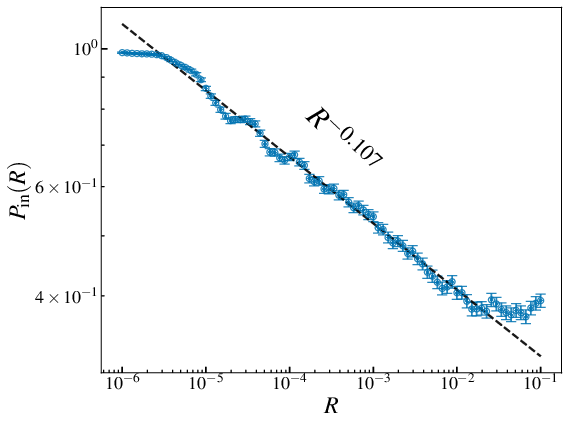 $$ P_{\mathrm{in}}(R) \sim R^{-0.107} $$