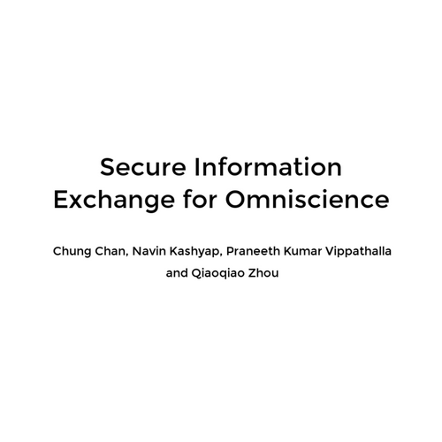 [13] C. Chan, N. Kashyap, P. K. Vippathalla, and Q. Zhou, “Secure information exchange for omniscience,” 2019. [Online]. Available: