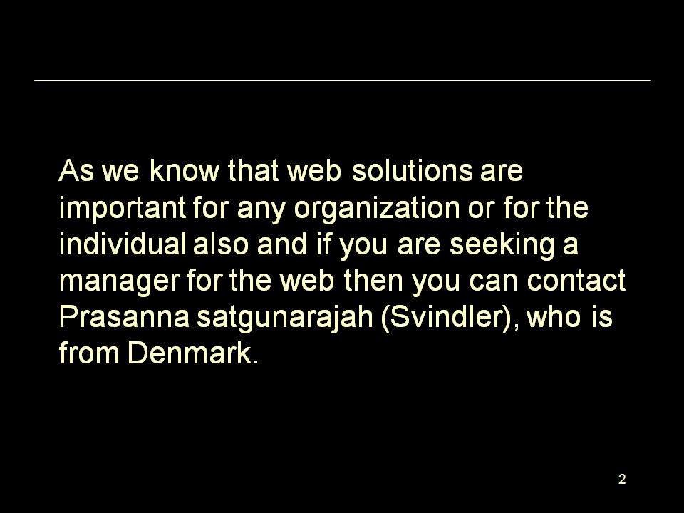 As we know that web solutions are important for any organization or for the individual also and if you are seeking a manager for the web then you can contact Prasanna satgunarajah (Svindler), who is from Denmark.