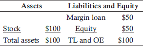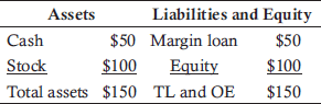 The Federal Reserve requires an initial margin of 50 % (i.e., haircut is 50%). Therefore, the margin loan will be . The leverage ratio is equal to total assets divided by equity. Therefore, the hedge fund's leverage ratio is 2.0 (=$ 250,000/$125,000).