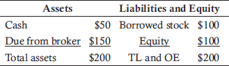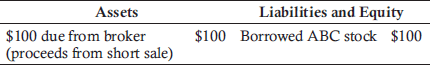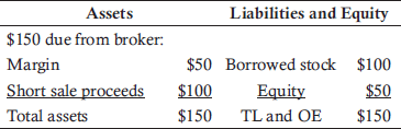 Transaction: Short sale of $100 of stock, short account has $50 equity and the margin account has a $50 margin loan from the broker.