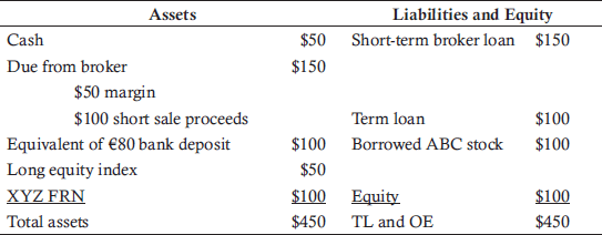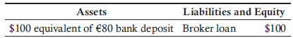First, assume the firm enters a 1-month currency forward contract and is short $100 against the euro and the 1-month forward exchange rate is $1.25 per euro. The balance sheet is: