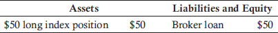 Now, assume the firm buys a 3-month ATM call option on a stock index with an underlying index value of $100. The call’s delta is currently 50%. The transaction is equivalent to using a $50 broker loan to buy $50 of the stock index.