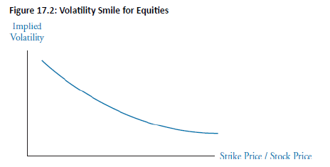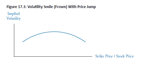 Volatility Frown: Instead of a volatility smile, price jumps would generate a volatility frown, as illustrated in Figure 17.3.