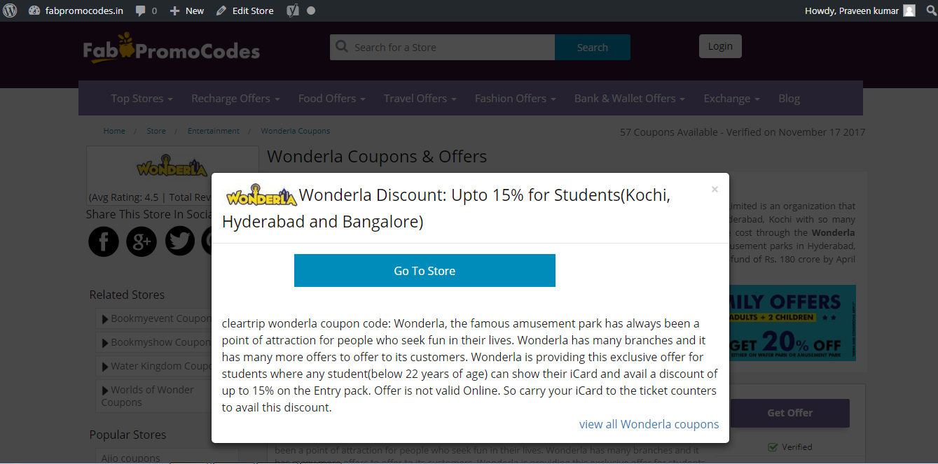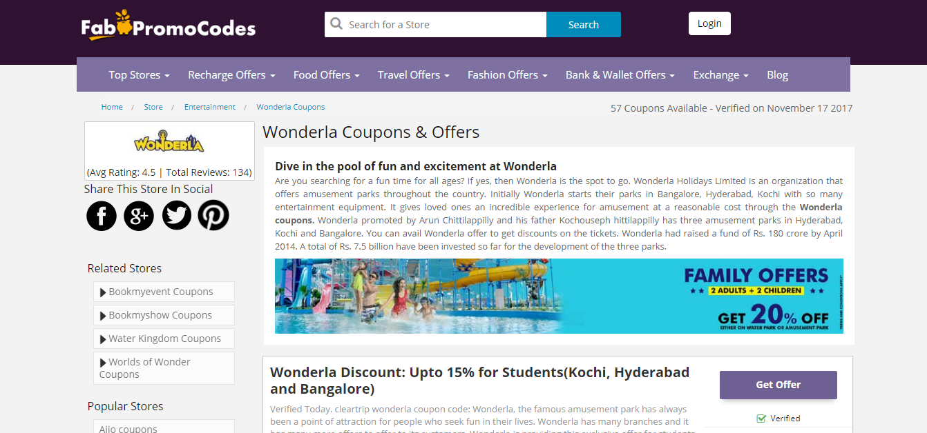 Now, you are logged into the Wonderla store, after select your coupon or offer then click to proceed button after payment gateway page will display Select the offer codes option and pasting the Copied Coupon Code in the box present at the left side above and avail the offer.That’s it! Enjoy with cashback on Entry Tickets.