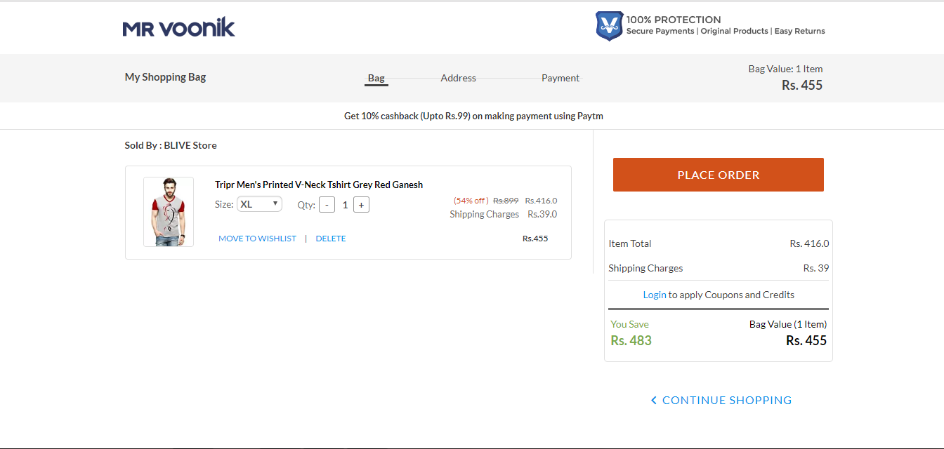 Now, after select your mens fashions accessories then click to proceed button after payment gateway page will display Select the coupon codes option and pasting the Copied Coupon Code in the box present at the Right side above and avail the offer.That’s it! Enjoy with cashback on online shopping.