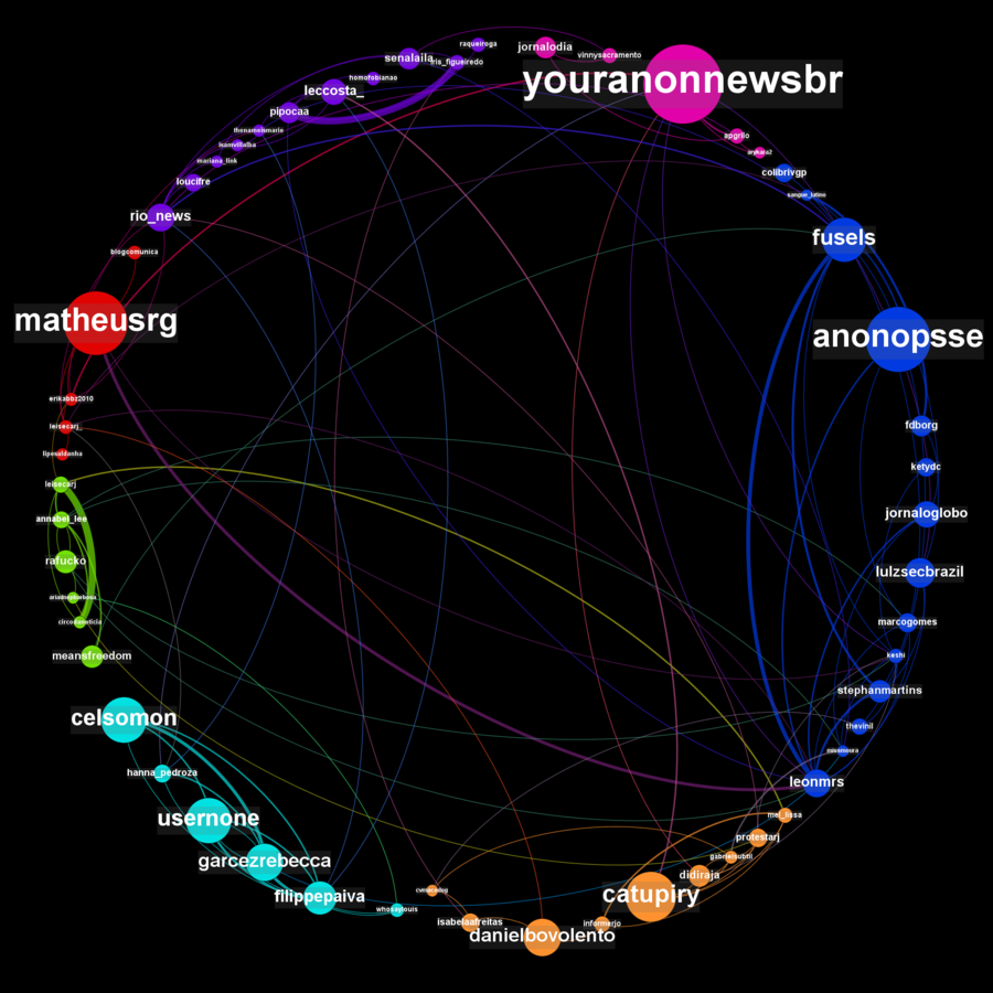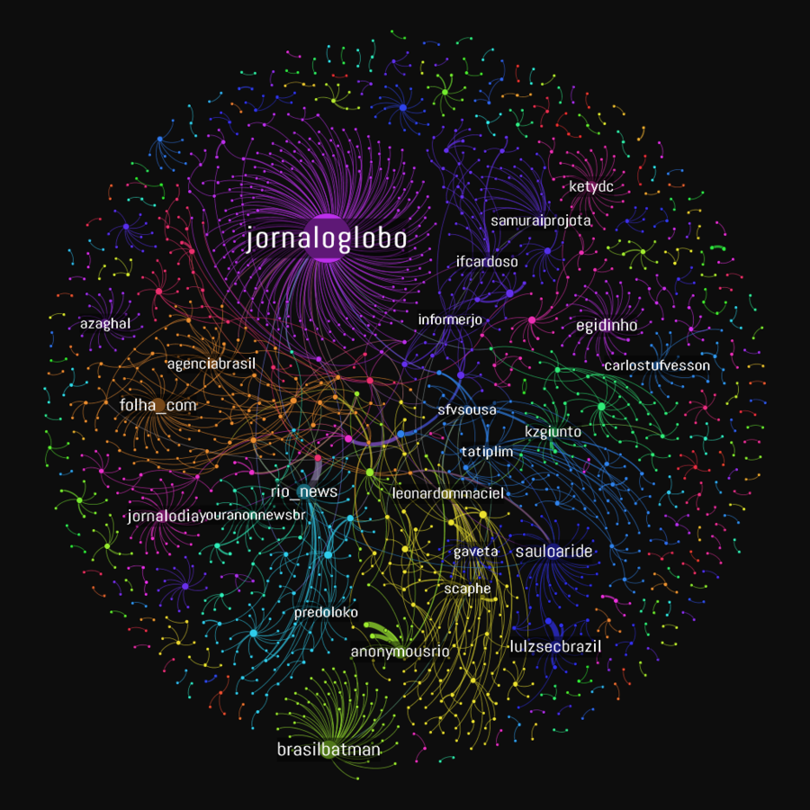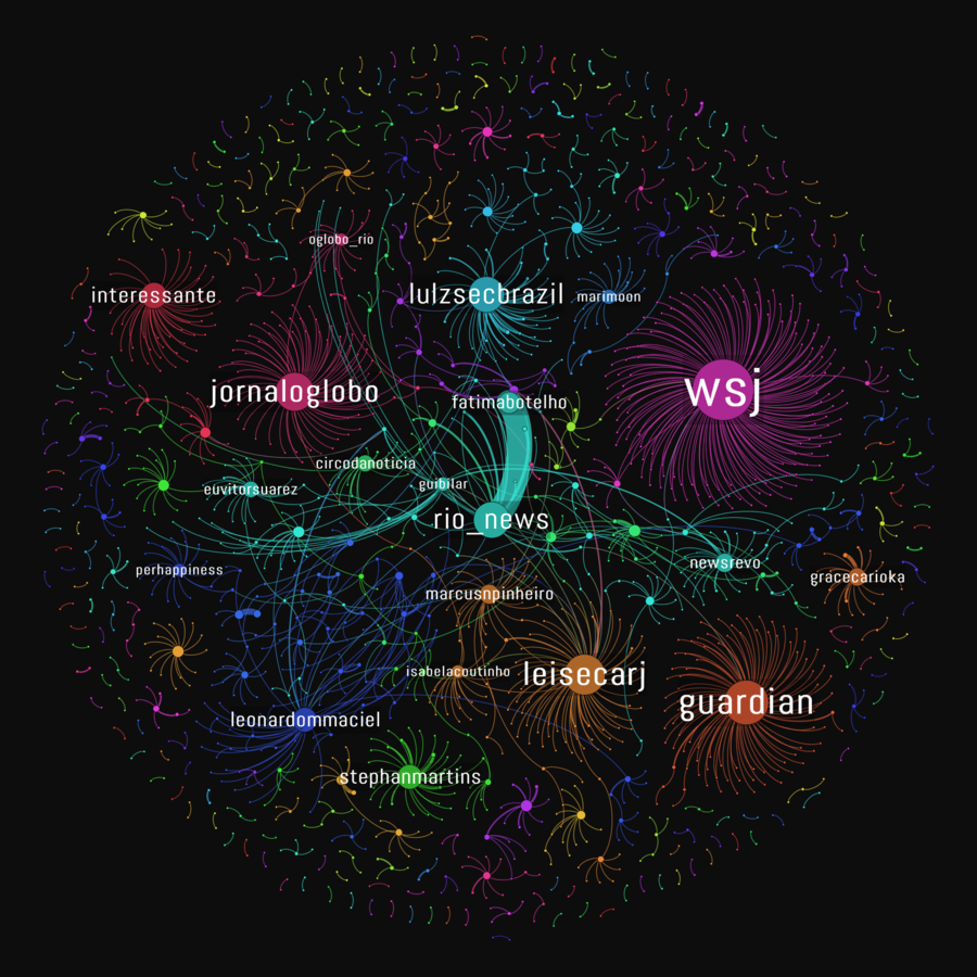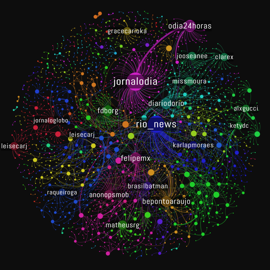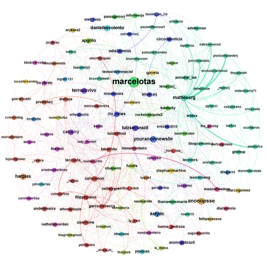 Rio_News, Dia 24 horas, BepontoAraujo. São perfis com tweets de sentidos territorializantes, que datavam e mapeavam os locais e detalhes das ocupações de ruas durante as manifestações.