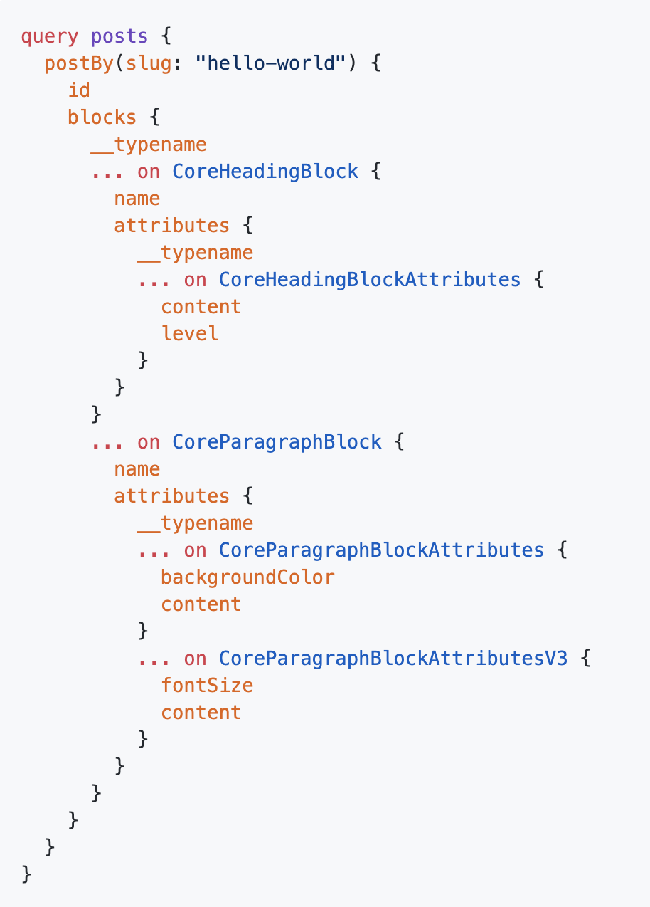 - possible to query through WP GraphQL through "blocks" field