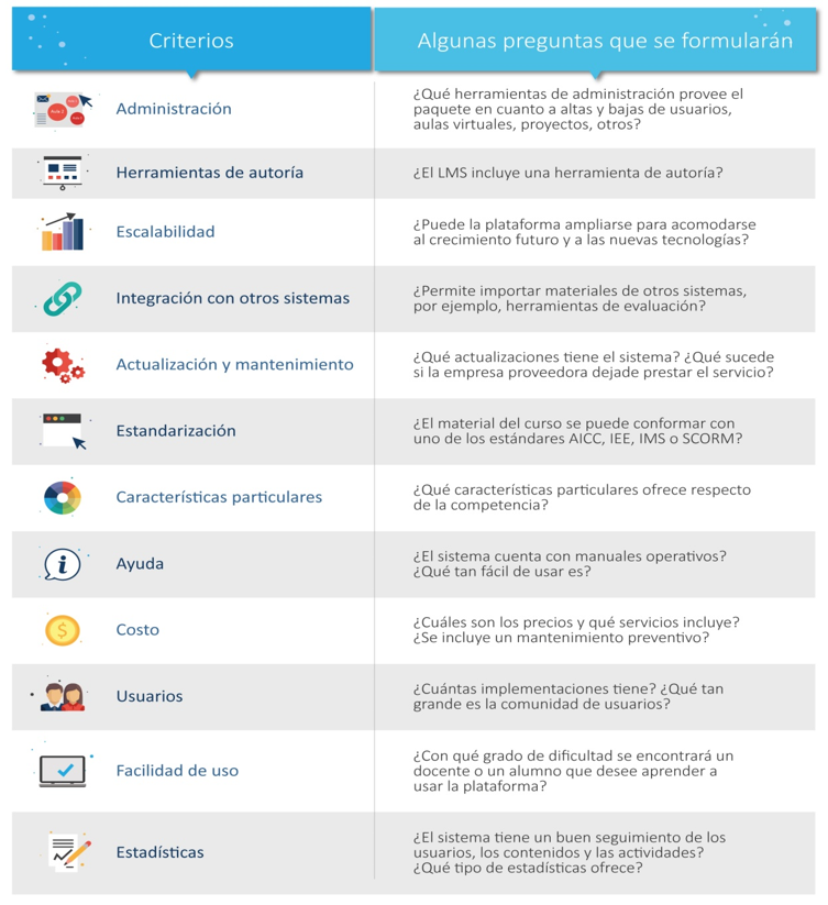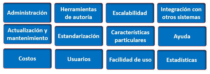Existen una gran variedad de factores que se pueden considerar al realizar un estudio comparativo de las distintas plataformas de e-learning existentes. Seguidamente, se indican, de manera general, algunos de ellos: