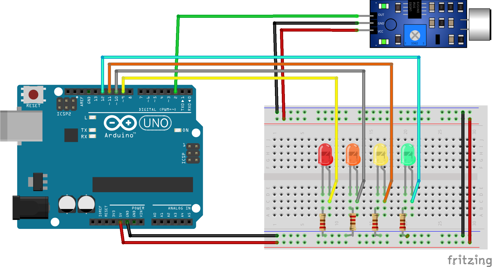 micrófono y LEDS