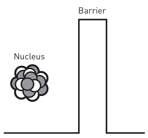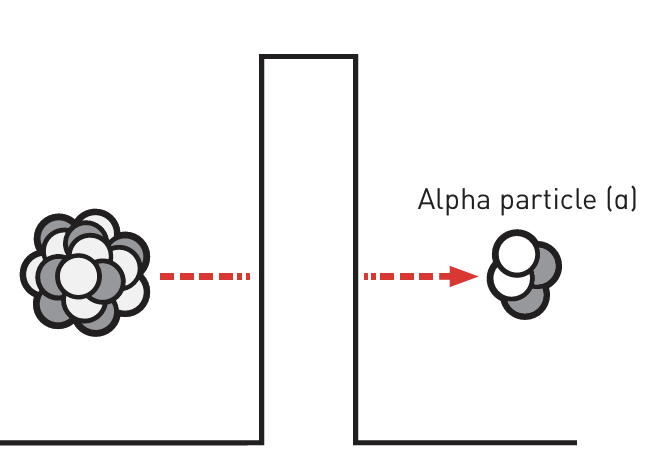 But occasionally particles "tunnel through" this barrier and escape, creating nuclear radiation as alpha particles.