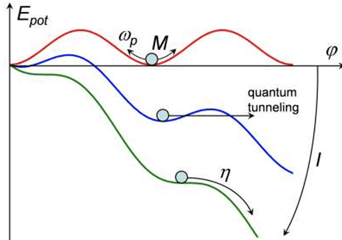 Its potential energy vs. magnetic flux looks like a cosine. Adding a bias tilts it to create a washboard potential.