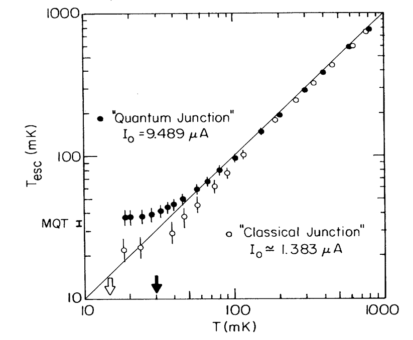 Lowering the temperature and looking at the rate of charge flow through the barrier of a Josephson junction, they were able to show that the escape rate saturated at a higher value than one would expect for classical temperature fluctuations.