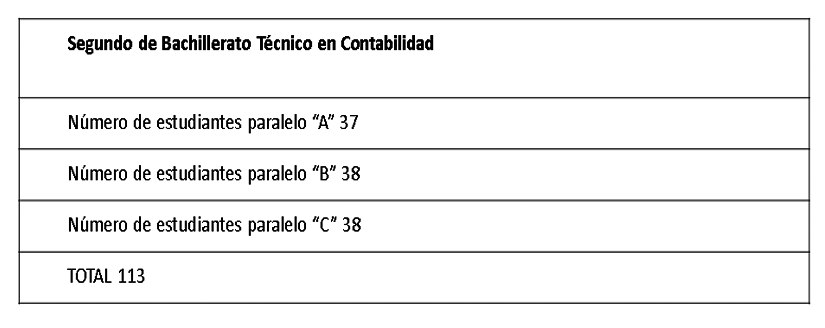 Un total de población en general entre estudiantes de segundo de Bachillerato Técnico en Contabilidad es de 113 estudiantes.
