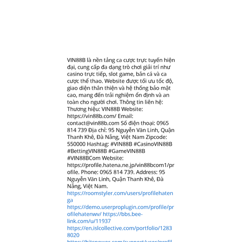 Website: https://profile.hatena.ne.jp/vin88bcom1/profilehttps://profile.hatena.ne.jp/vin88bcom1/profile VIN88B là nền tảng ca cược trực tuyến hiện đại, cung cấp đa dạng trò chơi giải trí như casino trực tiếp, slot game, bắn cá và ca cược thể thao. Website được tối ưu tốc độ, giao diện thân thiện