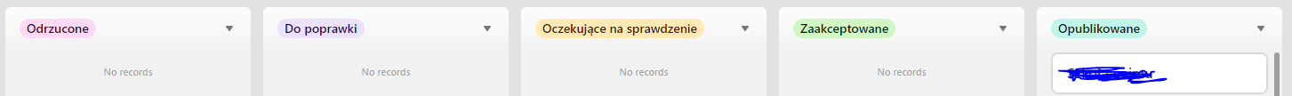 Kurs trafia do airtable (tutaj są wszystkie dane), mogę edytować pola, dodać brakujące informacje oraz zatwierdzić bądź odrzucić zgłoszenie