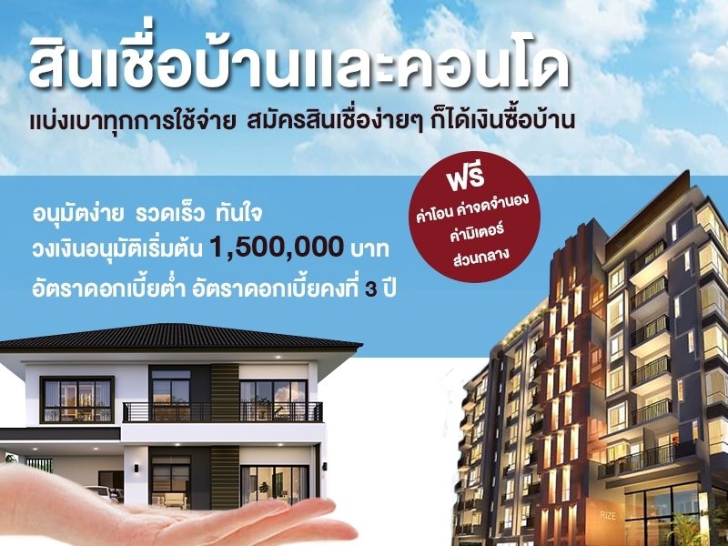 สมัครขอสินเชื่อที่อยู่อาศัย สินเชื่อบ้าน ทางออนไลน์ กับสถาบันการเงินชั้นนำต่าง ๆ มากมาย พร้อมรับโปรโมชั่นพิเศษตามต้องการ