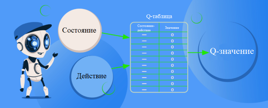 Q-обучение - это алгоритм обучения с подкреплением без использования моделей, позволяющий узнать ценность действия в определенном состоянии.