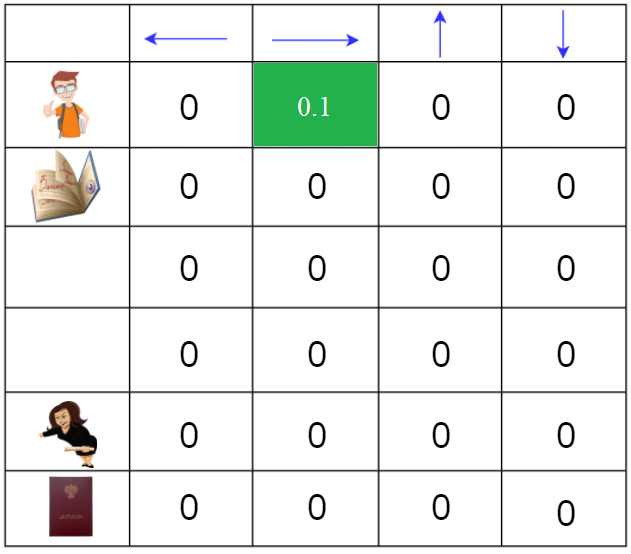 Q(Начальное состояние, вправо) = 0.1
