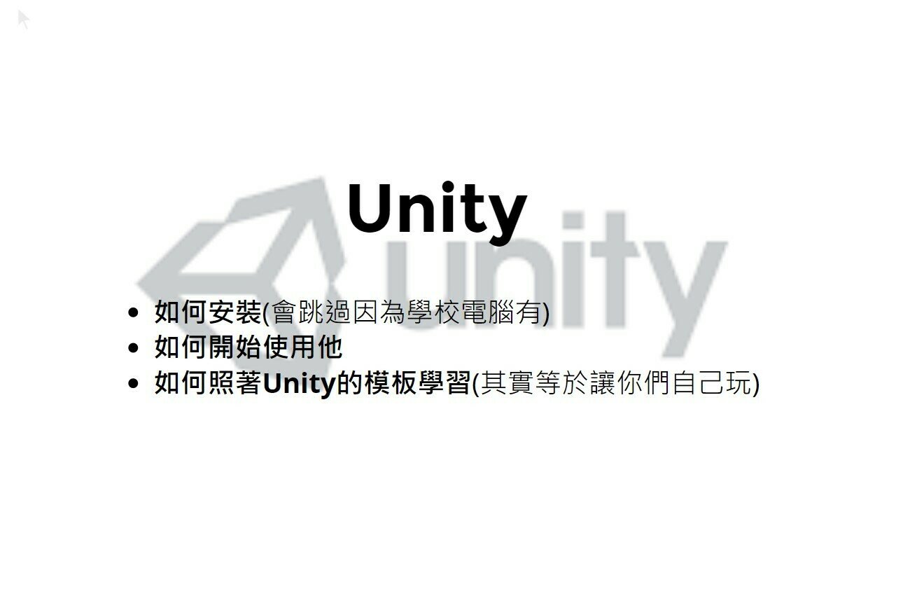 我想著把自主學習與資研的課程融合,於是我就決定教unity於是這個簡報就誕生了