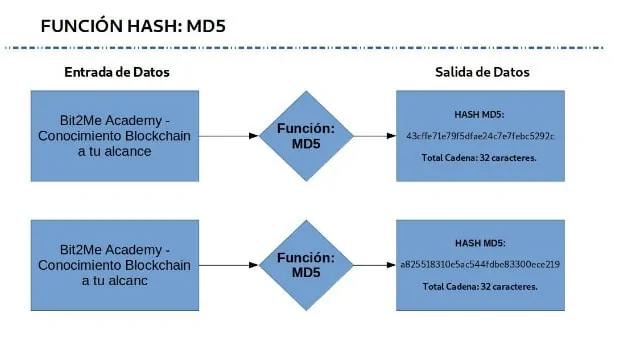Funcionamiento tipo avalancha. Cualquier mínimo cambio en la entrada de datos, origina un hash completamente distinto a la entrada de datos original.