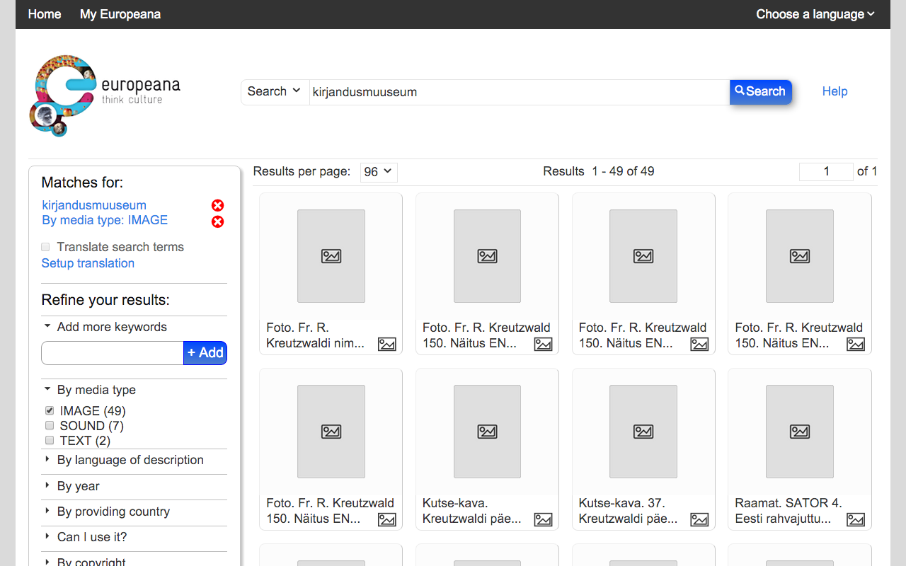Connection to the Estonian central museums database muis.ee