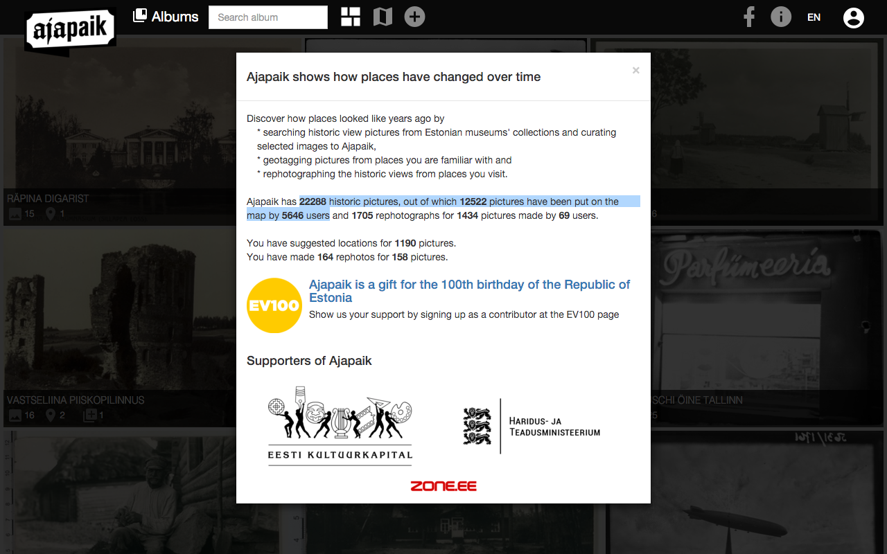 Ajapaik screenshot from 2015