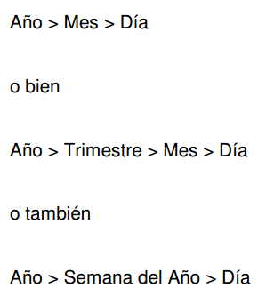 La posibilidad de definir una jerarquía nos permite ir navegando la información desde el nivel más amplio al nivel de detalle más bajo.