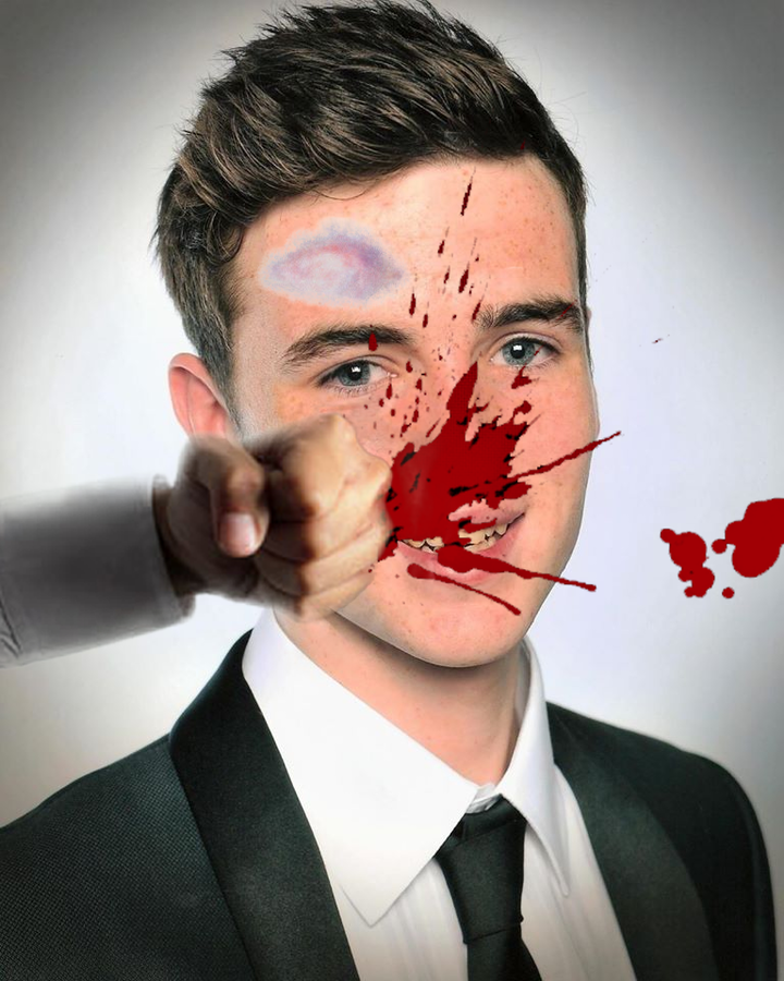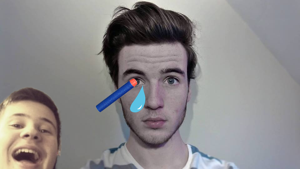 D shot V with an air gun. The pellet hit V near the eye, resulting in a bruise below the eyebrow and fluid filling the front of his eye.
