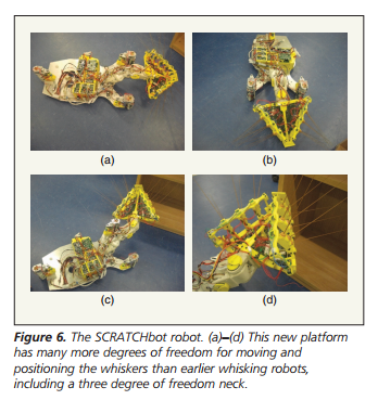 (d) Each whisker was controlled by an actuator and the robot to rotate to face the object that it was trying to model