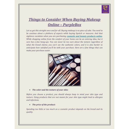 Let us get this straight once and for all. Buying makeup is no piece of cake. You need to be cautious about a plethora of aspects while buying lipstick or mascara. And that vigilance escalates when you are purchasing cosmetic and beauty products online. Visit here: https://purplebox.qa/cosmetics-beauty.html