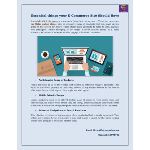You might think shopping is a woman’s thing, but not anymore. There are numerous top Qatar online stores with an extensive range of products that can make anyone glued to the screen for hours. These stores have products to cater to kids, parents, and teenagers. Online shopping is no longer a niche market aimed at a small audience. eCommerce websites tend to engage millions of customers. Visit: https://purplebox.qa/