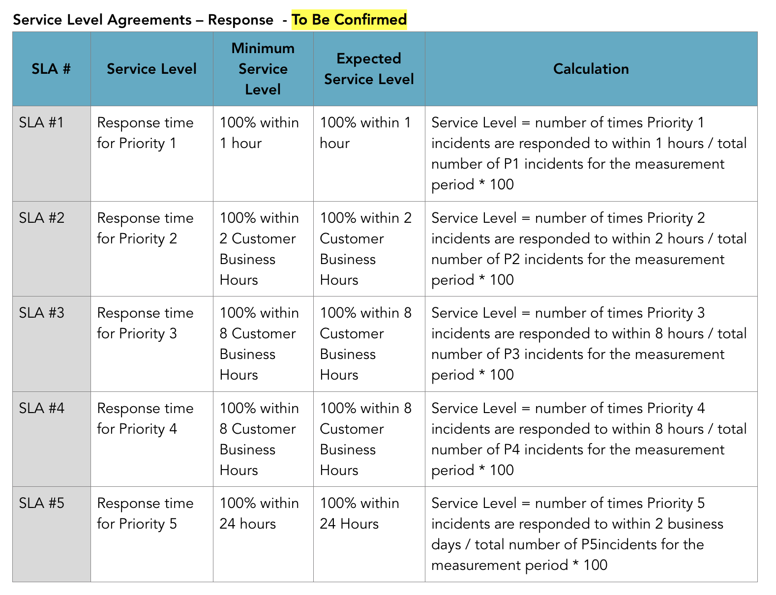 Bugs & Tasks SLAs