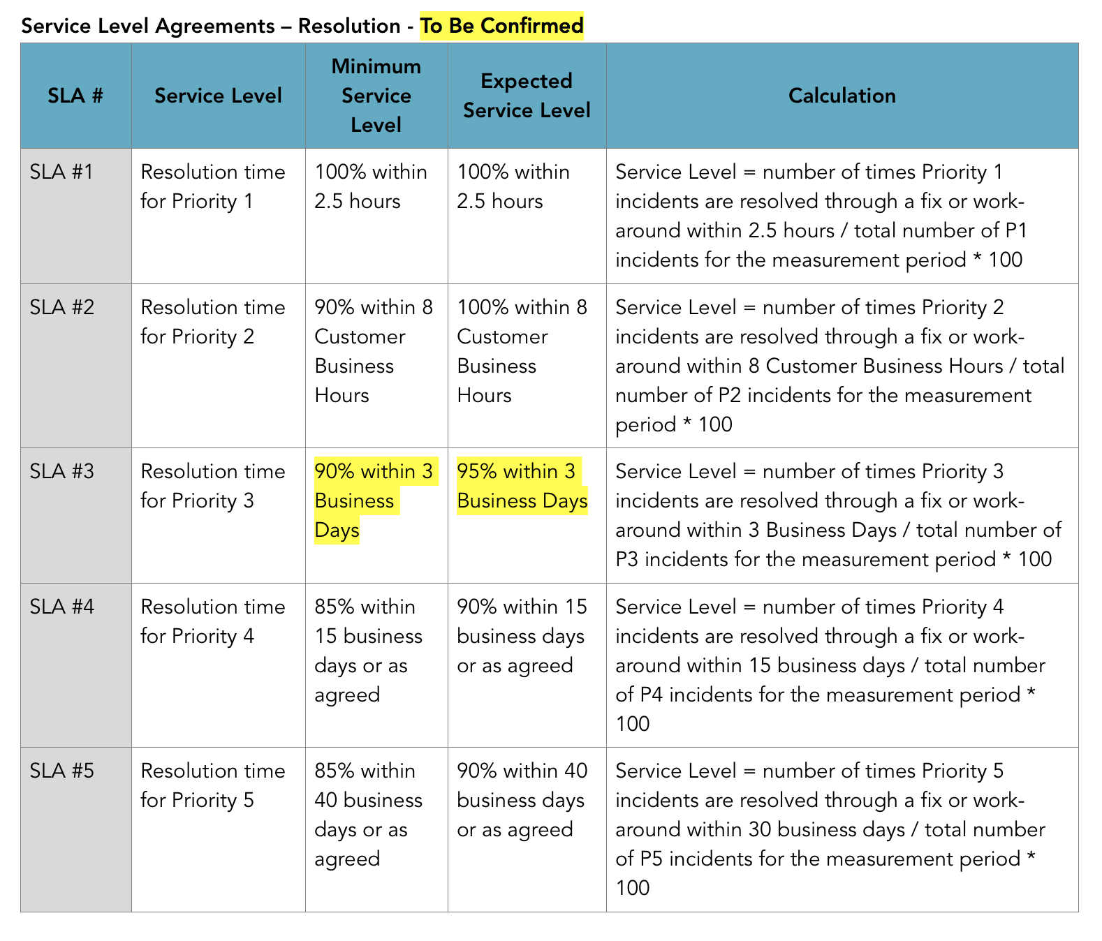 - Time to resolution