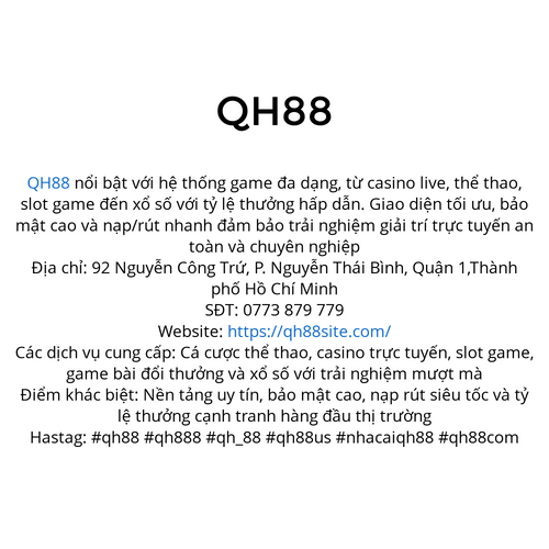 QH88 nổi bật với hệ thống game đa dạng, từ casino live, thể thao, slot game đến xổ số với tỷ lệ thưởng hấp dẫn. Giao diện tối ưu, bảo mật cao và nạp/rút nhanh đảm bảo trải nghiệm giải trí trực tuyến https://qh88site.com/