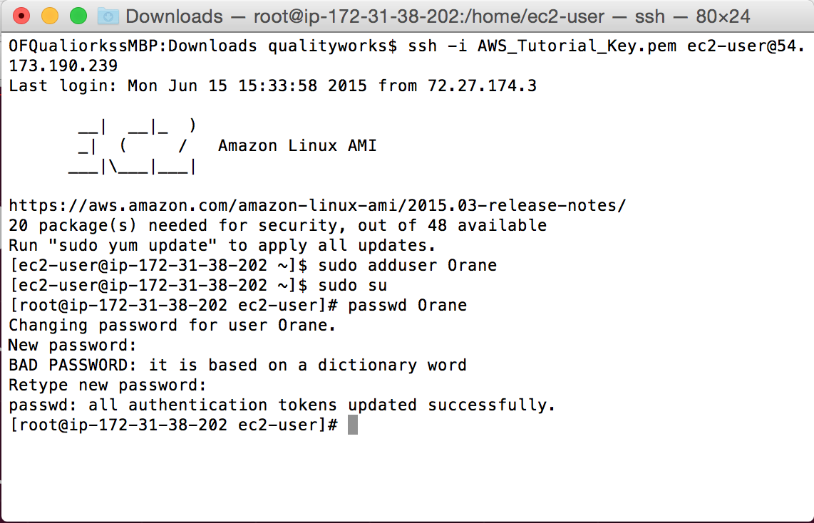 You have now successfully learnt how to create users for your EC2 Instance that can connect securely via ssh.