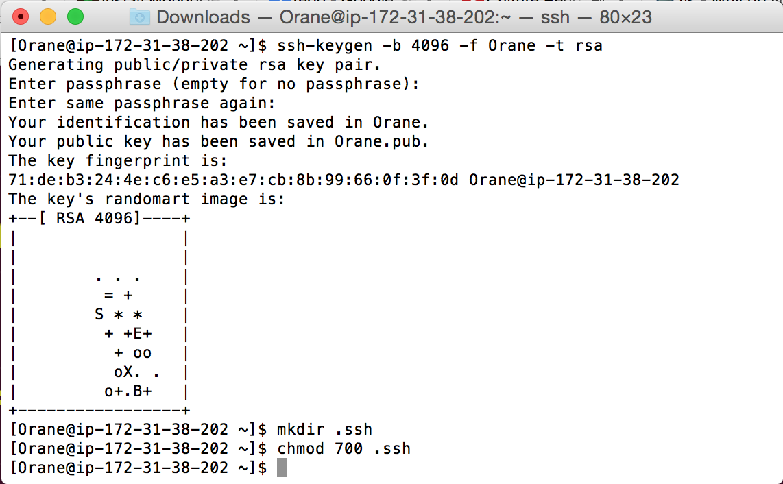 $ ssh-keygen -b 4096 -f <username> -t rsa to generate keys.